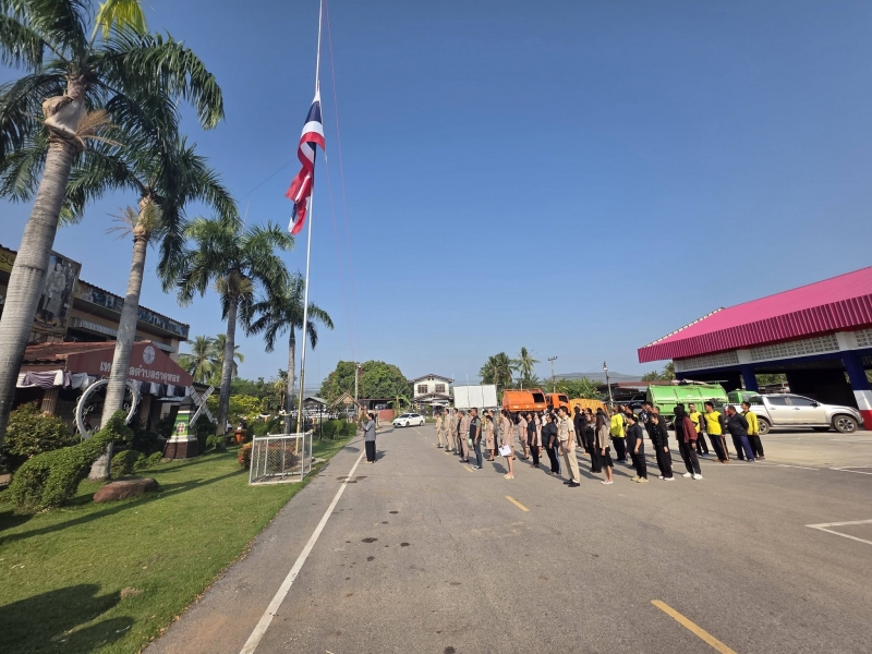 วันที่ 23 กุมภาพันธ์ 2569 ผู้บริหาร ข้าราชการ พนักงานเทศบาลตำบลธาตุทอง ร่วมเข้าแถวเคารพธงชาติ และ รับฟังแนวปฏิบัติในการทำงานจากผู้บังคับบัญชา