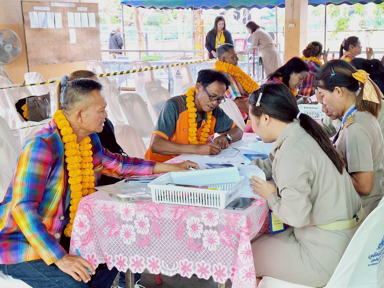 ภาพบรรยากาศการรับสมัครนายกเทศมนตรีและสมาชิกสภาเทศบาลตำบลธาตุทอง ในการรับสมัครวันแรก ณ หอประชุมอเนกประสงค์ เทศบาลตำบลธาตุทอง