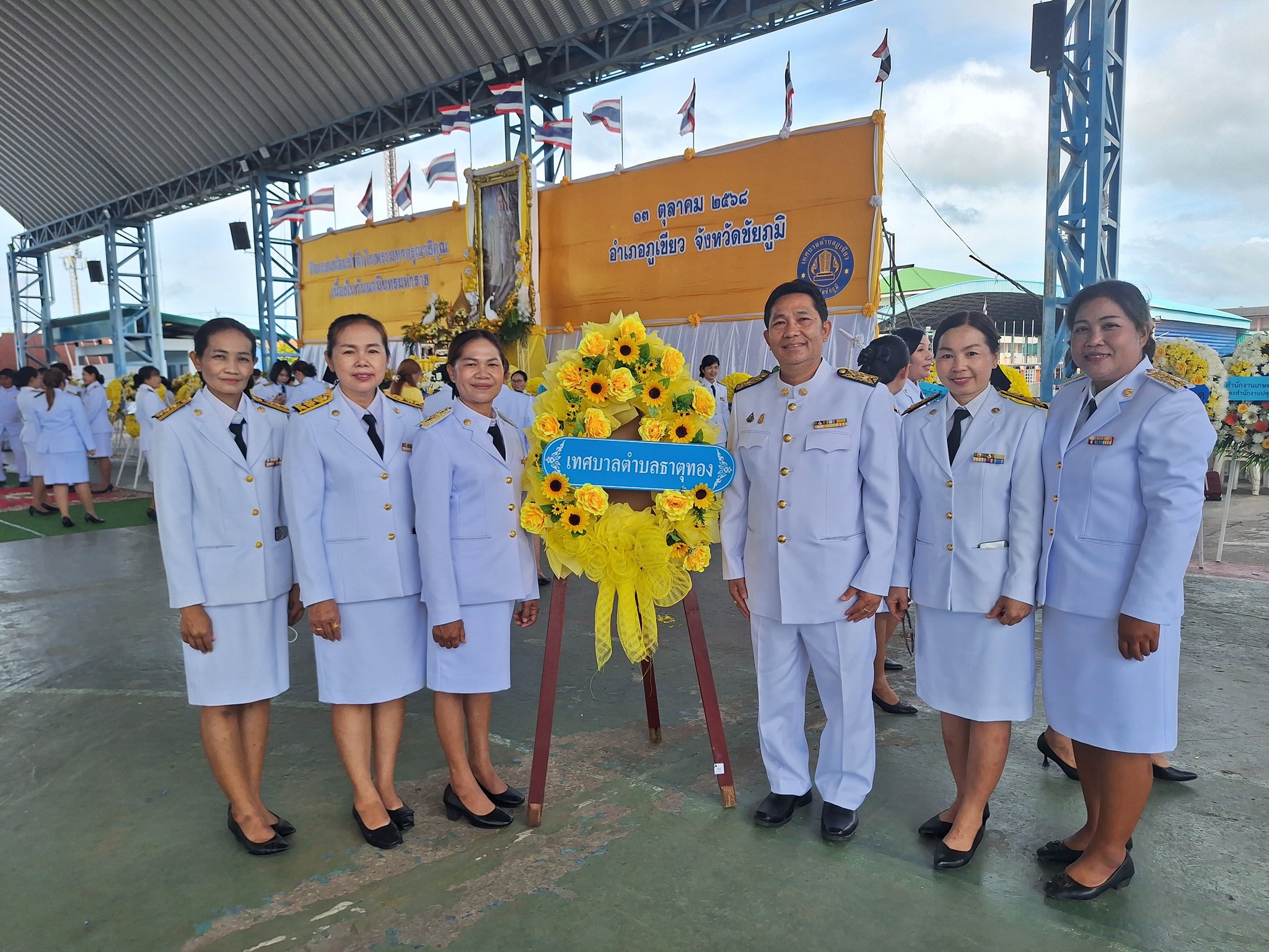 นายกเทศมนตรีตำบลธาตุทอง พร้อมด้วยคณะผู้บริหาร สมาชิกสภา ข้าราชการ พนักงาน เทศบาลตำบลธาตุทอง ได้เดินทางมาร่วมในพิธีวางพวงมาลาน้อมรำลึกในพระมหากรุณาธิคุณเนื่อใน วันนวมินทรมาหาราช ณ ลานกีฬาต้านยาเสพติดเทศบาลตำบลภูเขียว